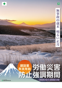 建設業年末年始労働災害防止強調期間は、工事の輻輳化による労働災害の増加や冬の季節特有の災害について注意を促し、無事故無災害で年末年始を迎えていただくため、周知を図っています。