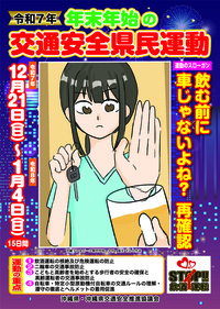 「飲む前に 車じゃないよね? 再確認」をスローガンに、県内一斉に「年末年始の交通安全県民運動」を実施します。
